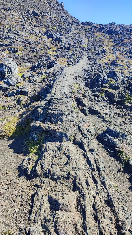 Si aujourd’hui tout est figé, sa dernière éruption n’est pas si vieille, elle date de 1720, à ce moment ici tout était en fusion.