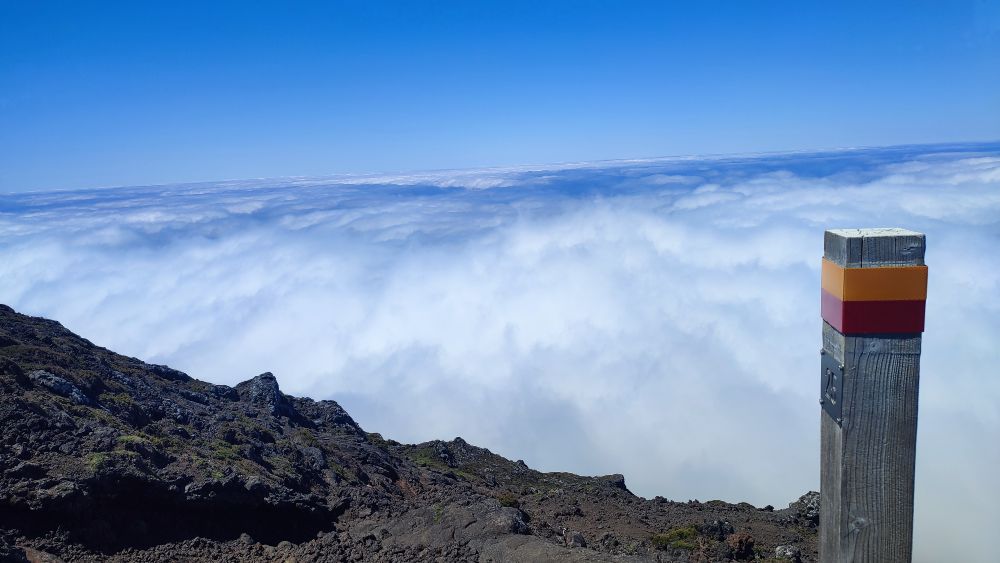 Enfin toujours cette mer de nuage et une balise qui aide si bien le randonneur car même avec une bonne visibilité on se demande bien parfois où il faut passer.