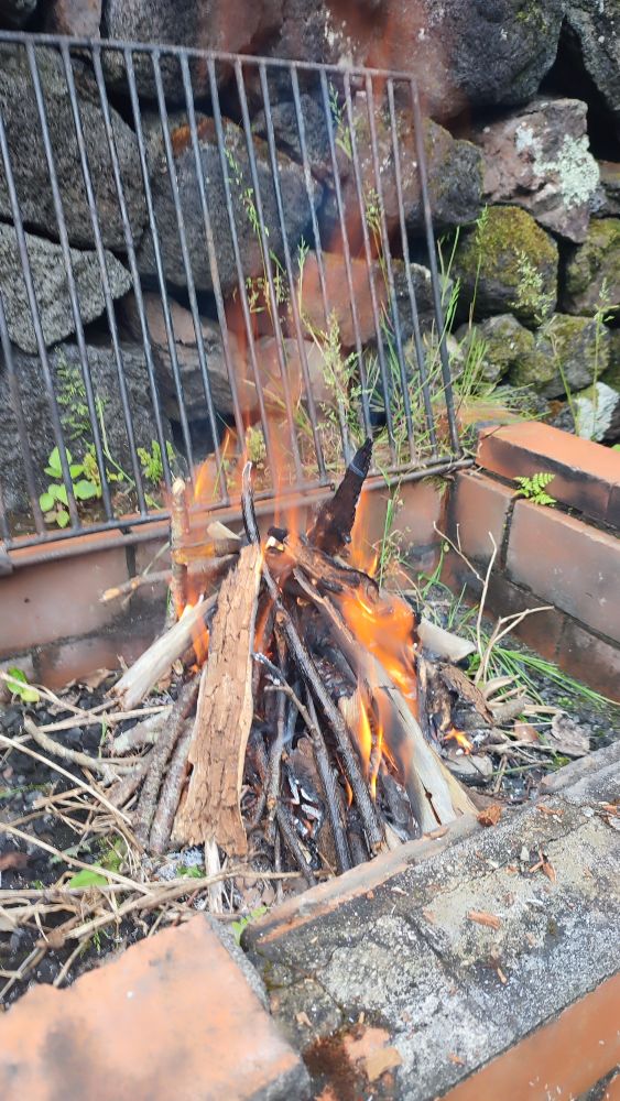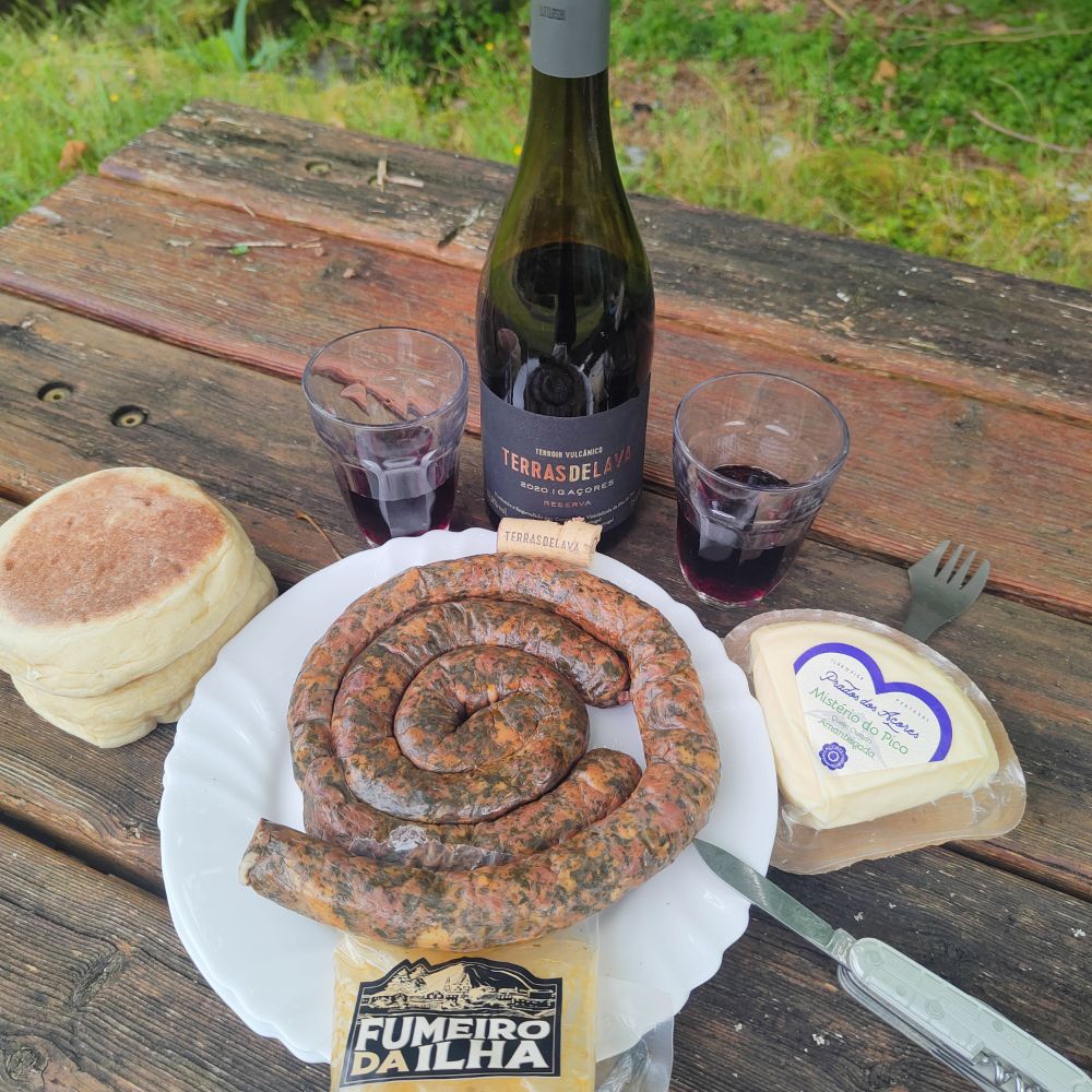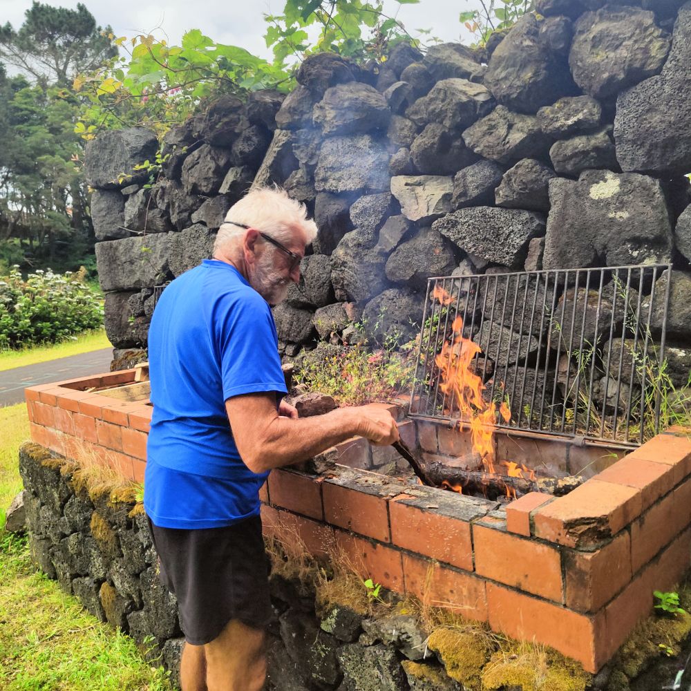 Pour nous réchauffer, ce soir barbecue avec des saucisses locales et un vin rouge terre de lave cuvée spéciale. Si le prix de 30€ peut paraître exorbitant quand on a connaissance des difficultés de culture et que le vin gouleyant ravi les papilles, les euros sont engloutis par la lave en fusion et ne restent plus en mémoire que le délice de ce liquide de Bacchus.
