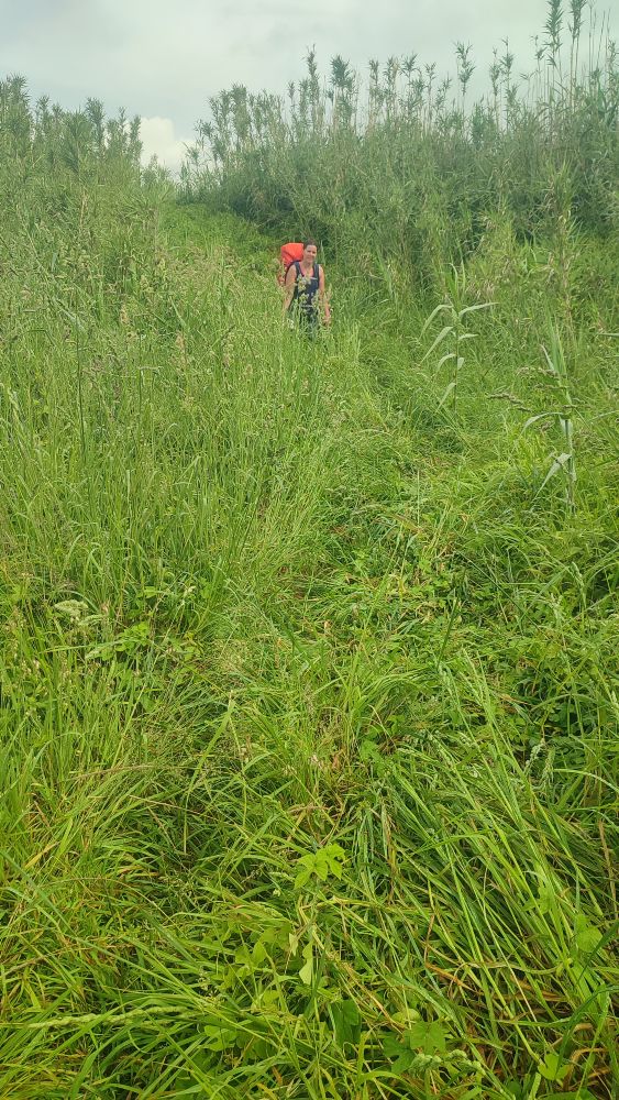 Et comme il a plu cette nuit, nous sommes mouillés du haut des cuisses au bout des chaussures. Celles-ci en gore tex ne peuvent-être efficaces, l’eau ruisselle des jambes et les coquines de gouttes s’infiltrent par le haut du godillot pour doucement humidifier la chaussette et terminer sa course aux doigts de pied.