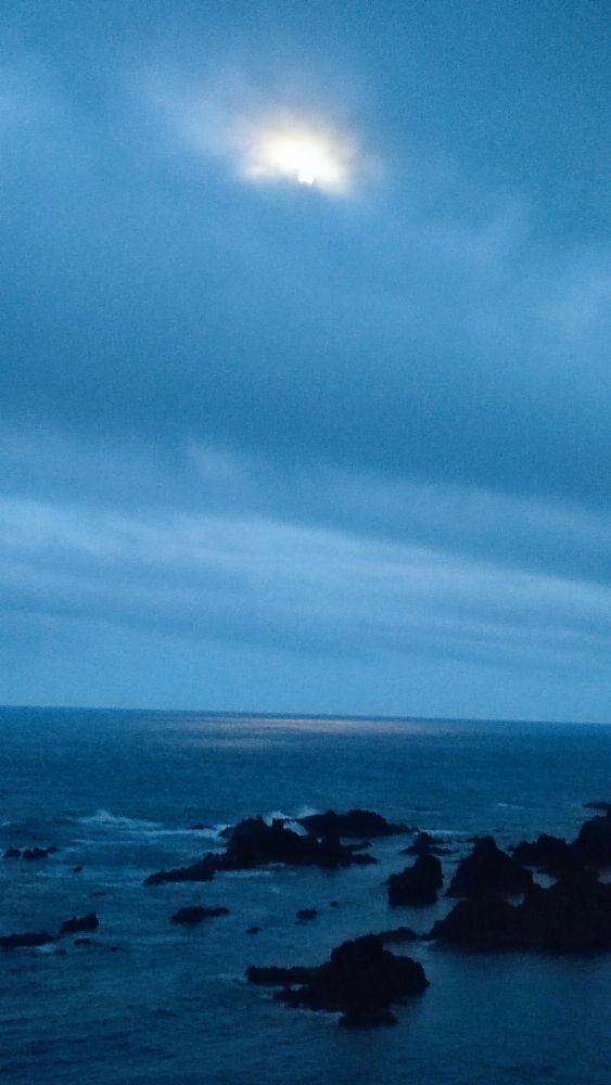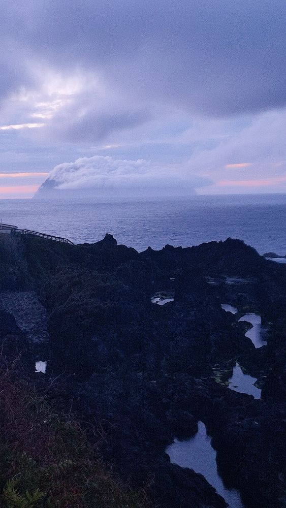 L’île de Corvo est toujours prisonnière d’un énorme nuage, et la lune nous dit bonsoir.