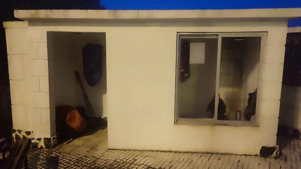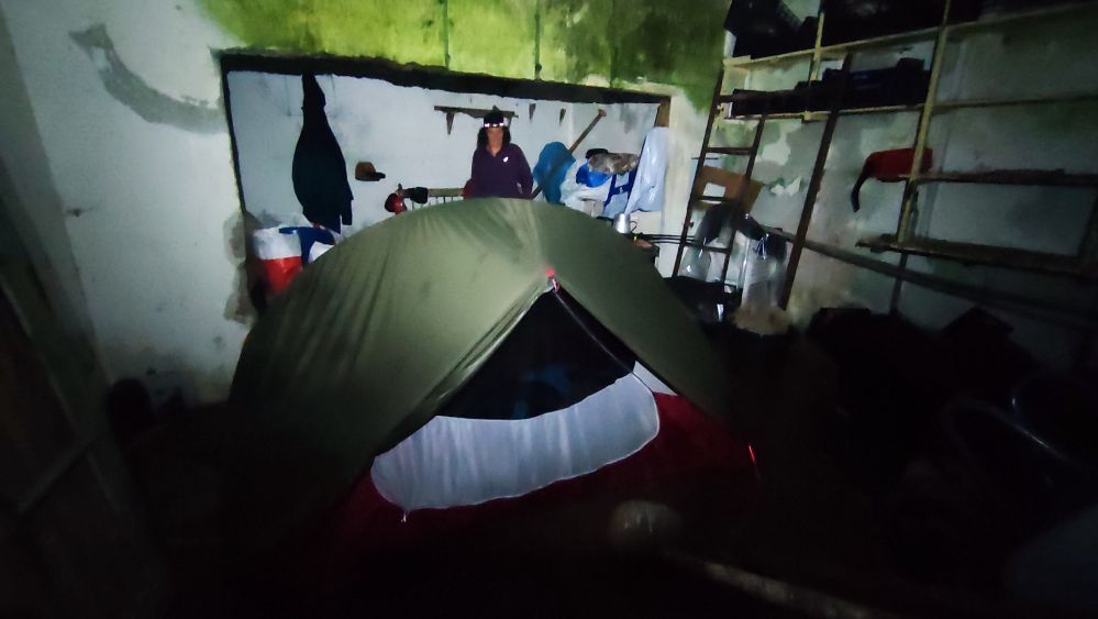 Alors que nous sommes déjà endormis, dehors la tempête sévit, et là nous constatons que le toit en béton de l’abri bus est poreux et de grosses gouttes nous tombent dessus.