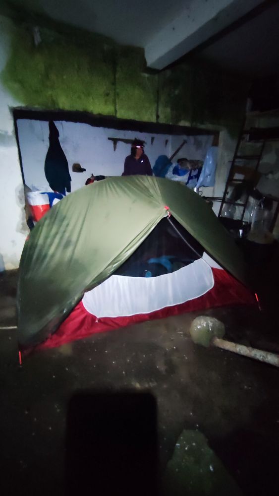 Une accalmie nous permet de remonter vers notre refuge qui va être d’un grand confort pour cette nuit de tempête. Le plus dur c’est de remettre les chaussures trempées.