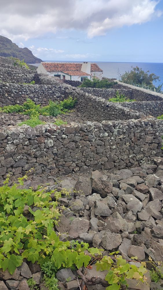 Ici comme sur l’île de Pico des vignes entourées de murets.