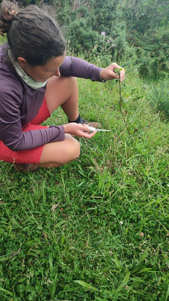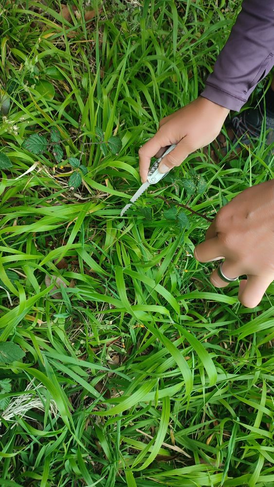 Mais avant de construire notre cabane de toile, il faut faire un peu de ménage. Couteau ou scie pour éliminer les ronces qui se feraient un plaisir de déchirer notre tente ou percer nos matelas, mais elles ne nous résistent pas.