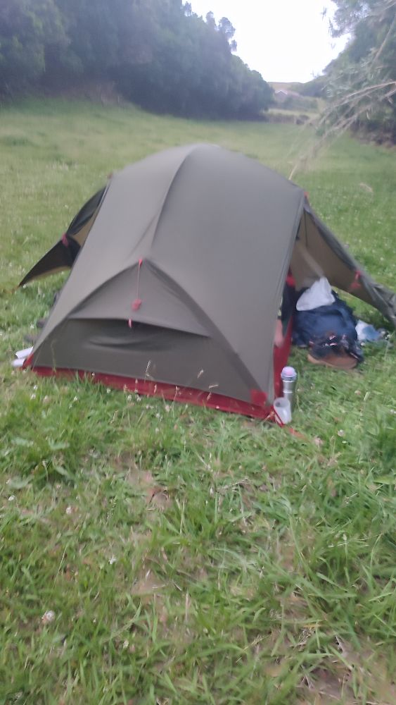 Après 28 kilomètres, 1296 mètre de dénivelé positif et 1337 mètre de négatif à une vitesse de 4,5km/h, nous trouvons un coin pour notre cabane. Nous nous sommes installés à l’abri des vents dominants, car la tempête arrive dans le milieu de la nuit.