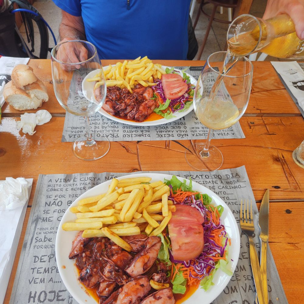 Le restaurant fermé le jour de l’anniversaire de Laetitia est ouvert, nous nous régalons avec des lulas grelhadas.