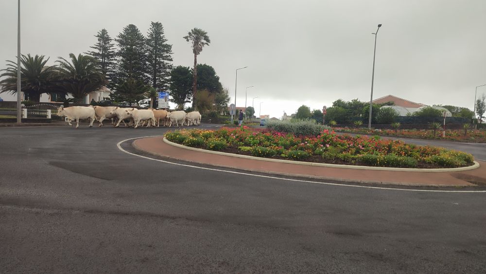 En arrivant à Vila do Porto, 5500 habitants, voici comment cela se passe dans les ronds-points.