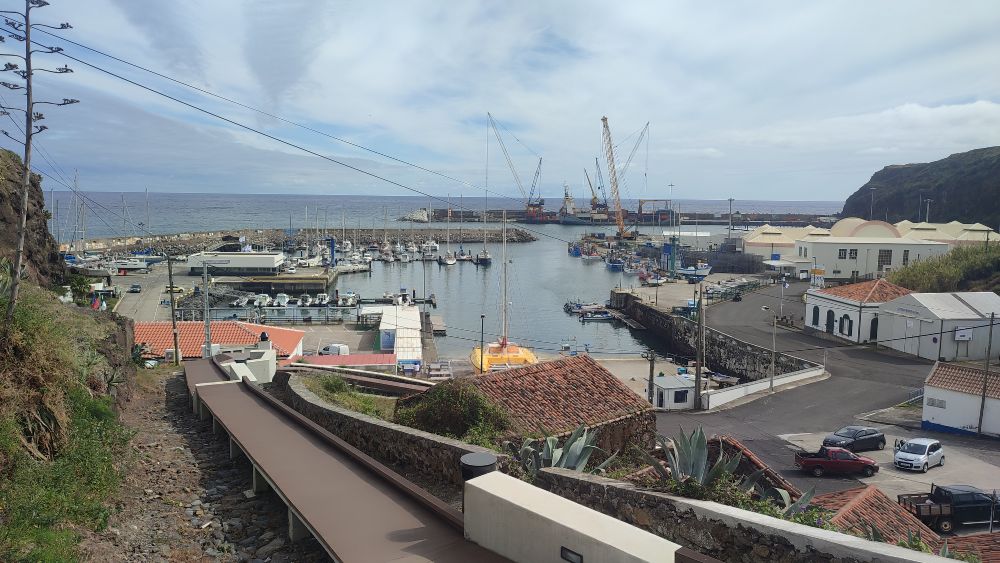 Trois jours se passent, ce matin le temps pluvieux nous pousse à revenir à Vila do Porto. Voici deux jours que nous transpirons et mouillons deux maillots à la journée. Avec l’air marin nous collons, cette nuit je n’ai pas arrêté de transpirer, car le vent qui amène la pluie est chaud, c’est la première fois sur les Açores.
