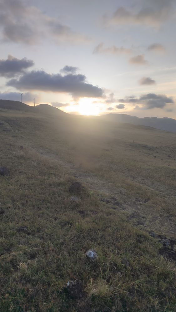 Le soleil se lève derrière les montagnes, présage d’une belle journée.