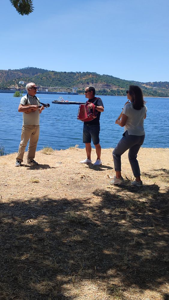 Après les émotions, il remet tout en place dans le cerveau surtout que le voici accompagné d’une musique locale. Des musiciens portugais qui ont fini leur déjeuner jouent et chantent quelques morceaux traditionnels.