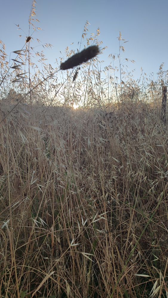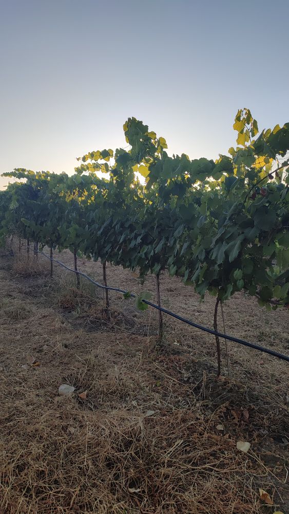 Nous profitons d’un grandiose lever de soleil avec des jeux de lumières dans les herbes hautes jaunies par les canicules journalières ou encore dans les vignes ou un arrosage au goutte à goutte leurs permettent d’avoir cette verdure.
