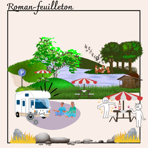Avec leur maison mobile, ils se dirigent vers un lieu qu’ils ont repéré en arrivant, un ermitage devant lequel se trouve un petit parking. Les voici stationnés le long d’une vigne où de hauts peupliers leur offrent de l’ombre et de la fraîcheur. Avec la succession de difficultés, certains auraient le moral en berne et une poussée de colère envers le garagiste. Ce n’est pas leur cas, est-ce peut-être dû aux sourires des mécaniciens ? Enfin, ils ne voient pas l’intérêt de faire monter leur niveau de tension et ils se réjouissent de pouvoir à nouveau dormir chez eux, au milieu de cette campagne. Elle va leur garantir une nuit de calme et de sérénité Peut-être la chouette viendra-t-elle leur jouer une sonate au clair de lune avec son chant de six à sept notes bien détachées? Si certains y voient un mauvais présage, eux se sentent en connexion avec cet animal nocturne aux dons insoupçonnés, mais ça, c’est une autre histoire.