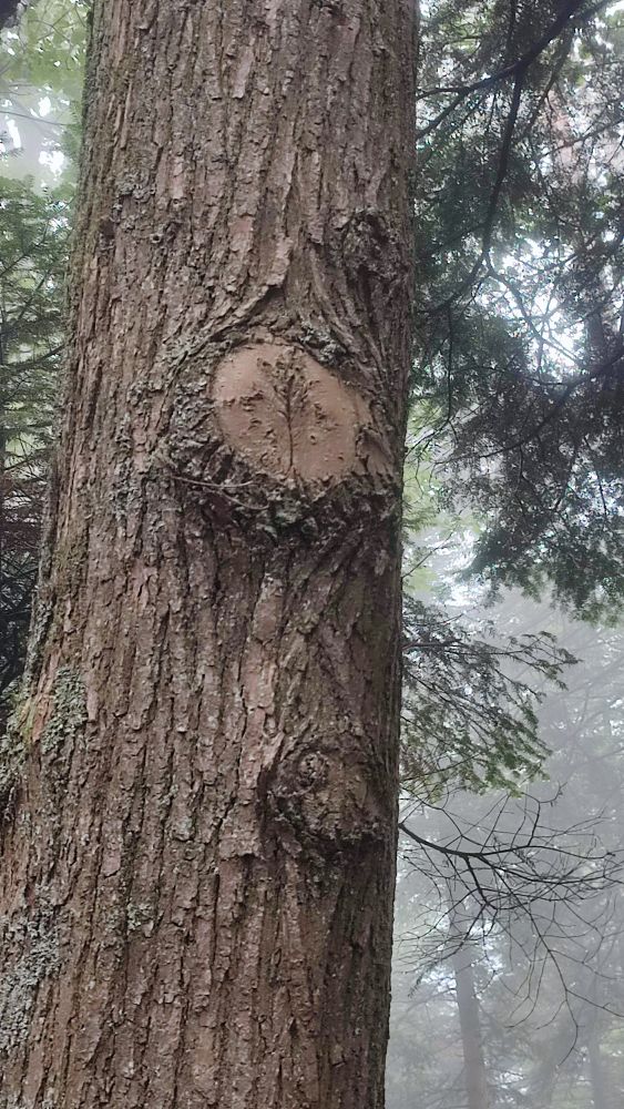Mon regard dans ces forêts musarde, car la nature n’est pas avare en surprise. Cet arbre garde la cicatrice d’une branche tombée il y a sûrement quelque temps fait croire à une sculpture.