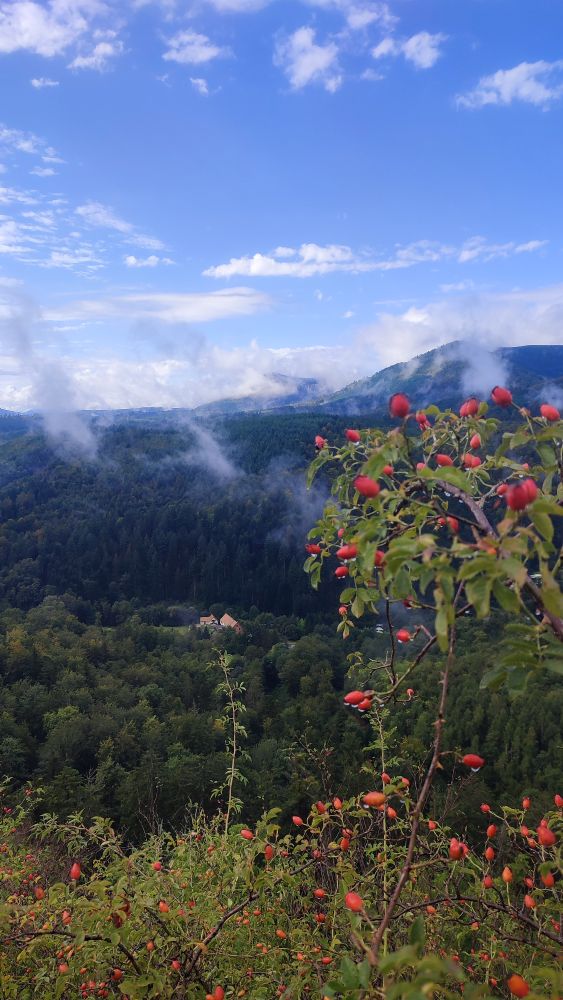 Le dernier Château de notre périple, il domine la vallée de la Bruche, le Hohenstein. Quelques marches, un mur mais surtout une vue qui nous ravie.