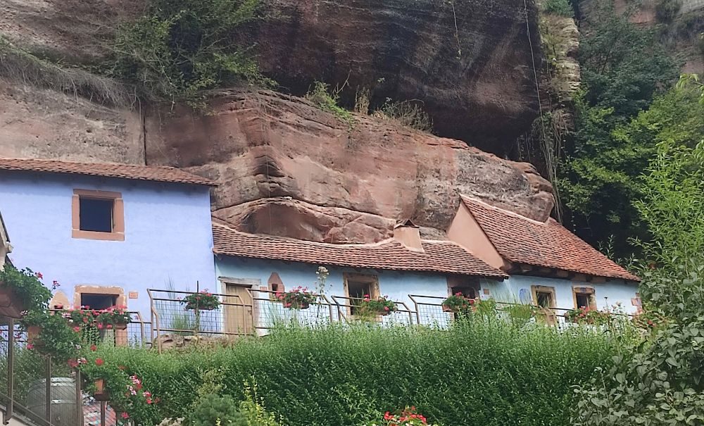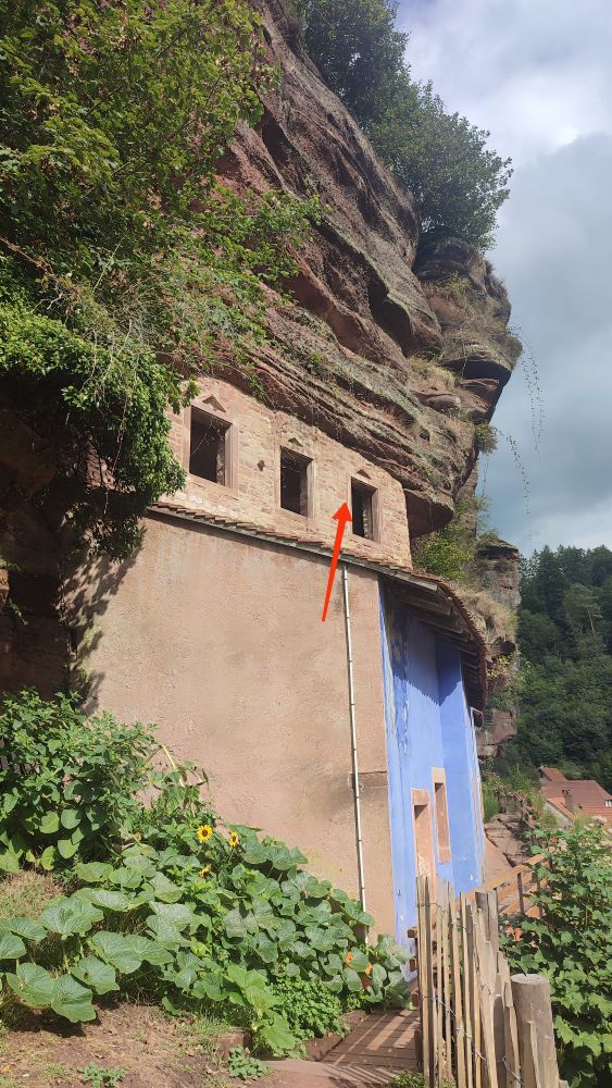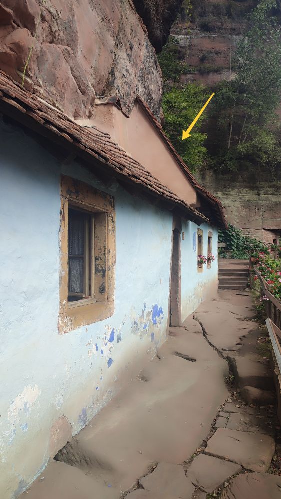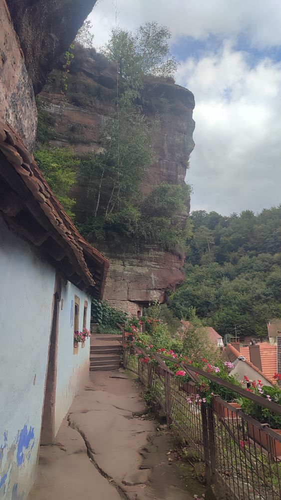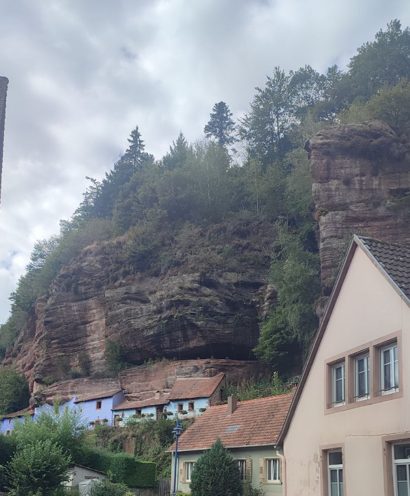Les maisons des rochers de Graufthal sont aménagées sur un surplomb rocheux d’une falaise en grès.