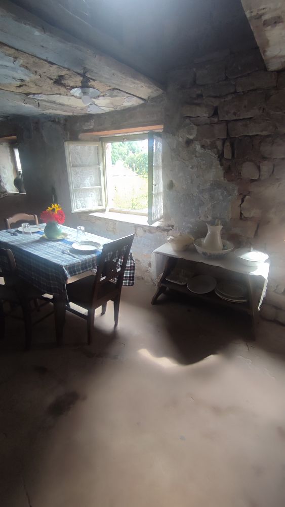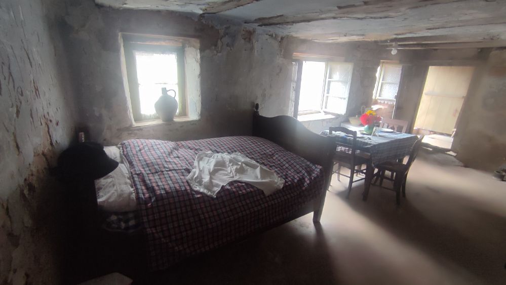 Voici un exemple de vie dans ces maisons : il y a deux pièces de part et d’autre d’un espace exigu qui sert d’entrée et de cuisine. On y trouve aussi une remise et une étable pour les chèvres. Les huit enfants de la famille dorment dans le grenier accessible par une échelle en bois placée à l’extérieur.