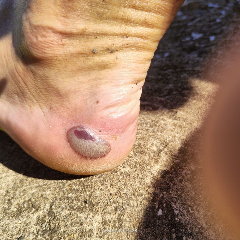 Je suis parti avec une tendinite à chaque tendon d’Achille et le soir du premier jour, je me suis retrouvé avec deux belles ampoules à chaque pied.