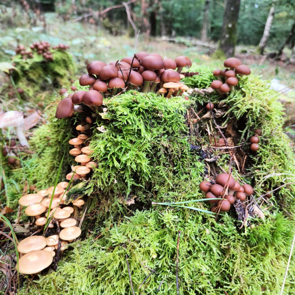 Même par ces temps pluvieux la forêt nous réserve ses surprises et son abondance en champignons, tapis dans la mousse.