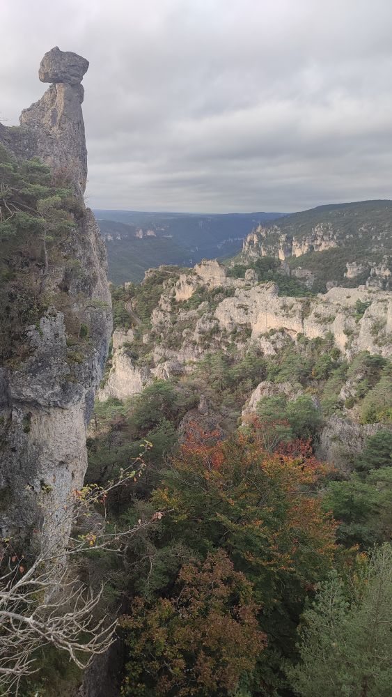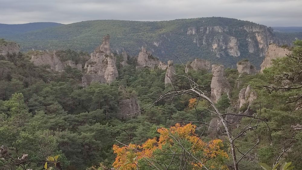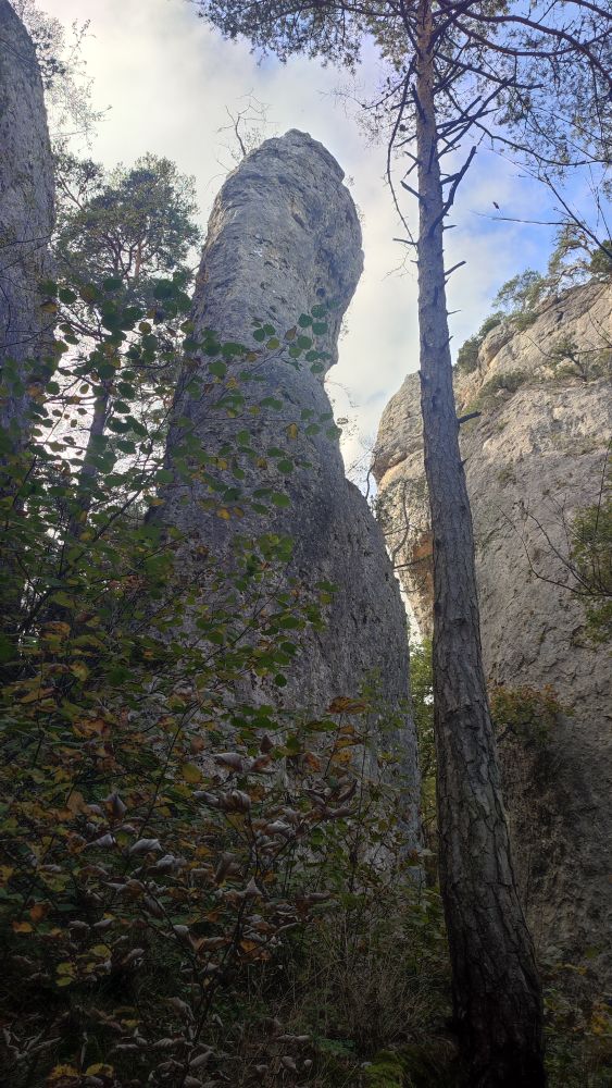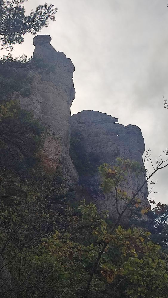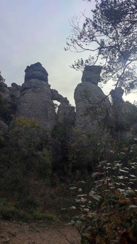 Au milieu de ce monde de pierres et de sculptures, la fragilité de la flore se signale par son apparat d’automne, alors que se présente face à nous une forêt de colonnes et des falaises colorées.
