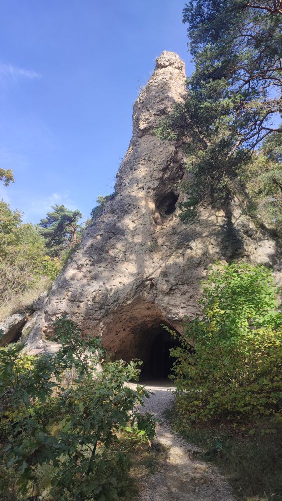 Baume obscur; baume signifie grotte, au fond de celle-ci fut retrouvé un squelette d’ours des cavernes apparu il y a 250 000 ans et disparu il y a 10 000 ans. Cette grotte abritera des hommes jusqu’au 19 ème siècle. Monde moderne oblige, elle est aménagée d’éclairage indirect et un écran diffuse régulièrement un court métrage sur l’histoire de Montpellier le Vieux.