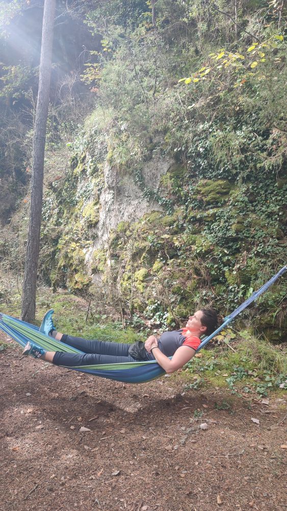 Après plus d’une heure de marche un espace zen est proposé. En cette période automnale, le silence est au rendez-vous, un bruissement de feuilles, le sifflement d’un oiseau, agrémentent les instants alors que le soleil nous illumine.