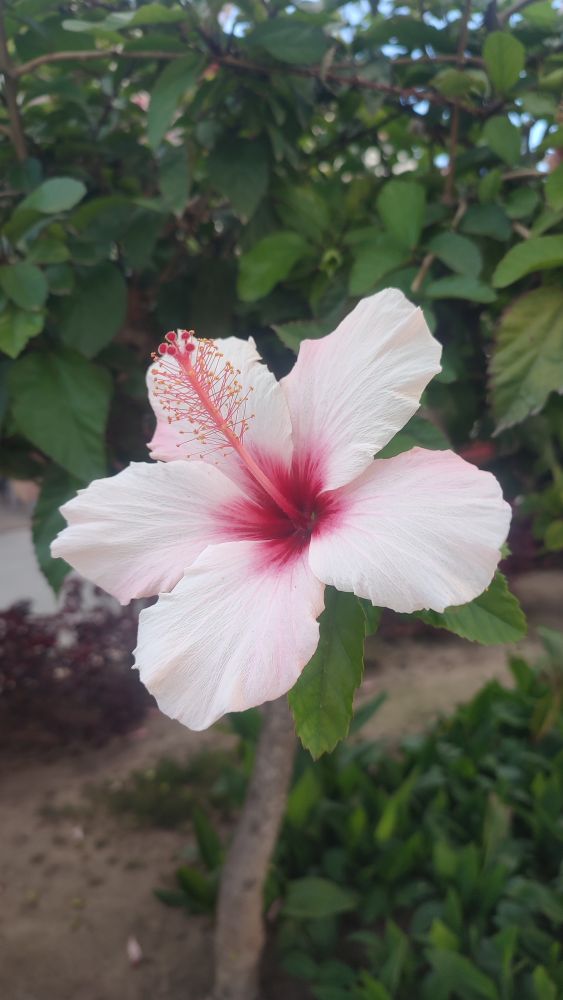 Il faut être attentif pour apercevoir la petite nivéole qui nous illumine par sa blancheur alors que l’hibiscus plus imposant est flamboyant.