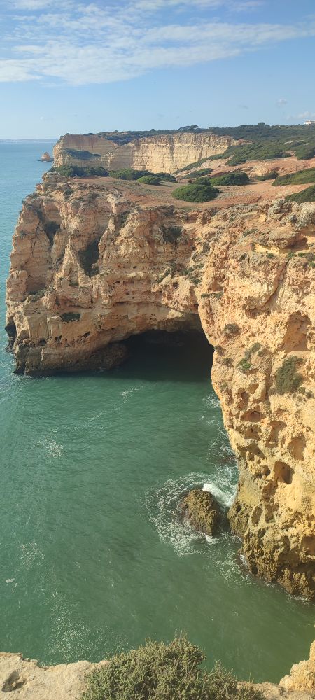 Notre journée se poursuit en longeant les falaises. Là aussi l’œuvre de la nature est présente, c’est une succession de grottes et de gouffres où l’eau d’un vert émeraude s’infiltre dans une respiration profonde.