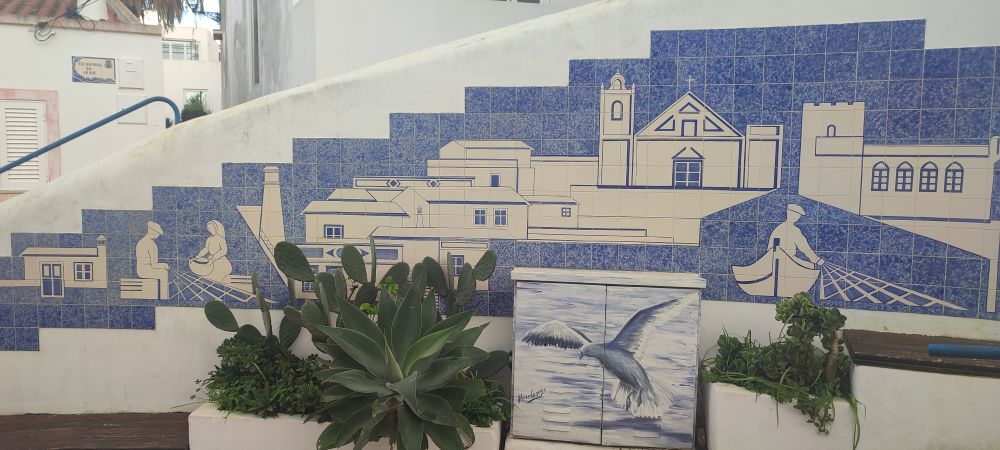 Nous visitons Ferragudo, petit village de pêcheurs niché dans le fond d’une baie.