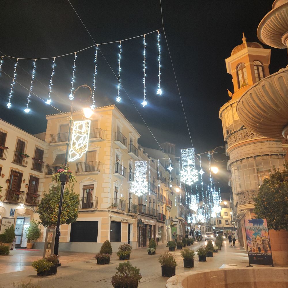 Nous arrivons à Antequera et pour conclure cette journée qui préfigure l’arrivée de Noël, nous partons pour une balade dans les rues illuminées de la ville.
