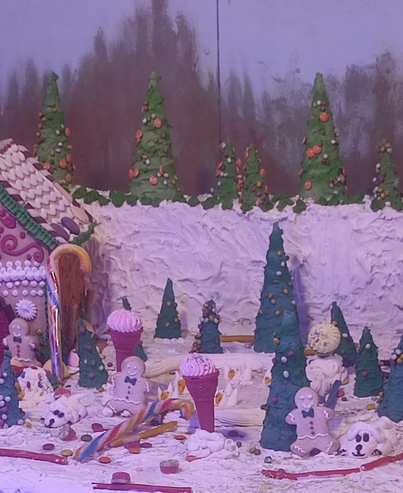 Il est fabriqué en meringue et sucreries diverses.
