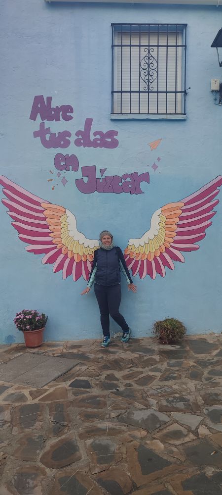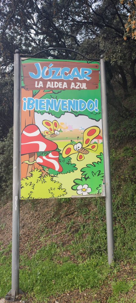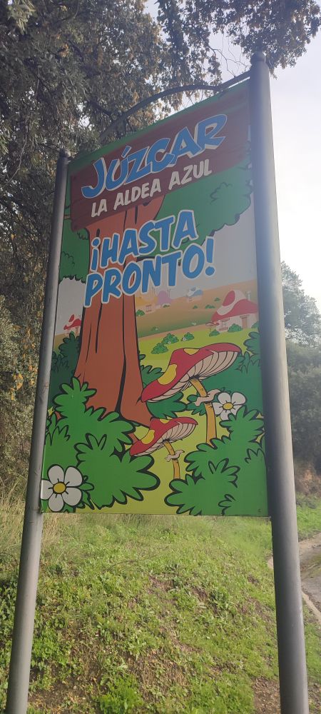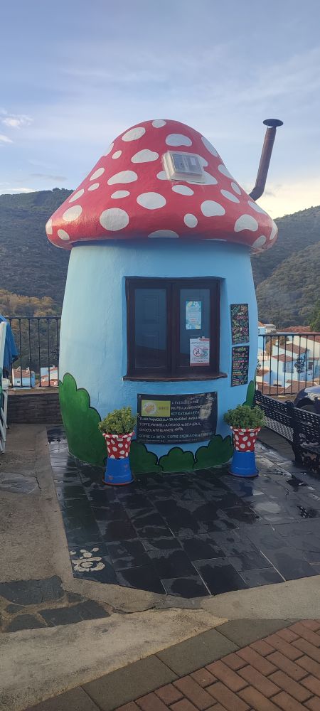 La voici malicieuse et devant cette maison elle me prévient que les Schtroumpfs nous surveillent pour nous faire une blague.