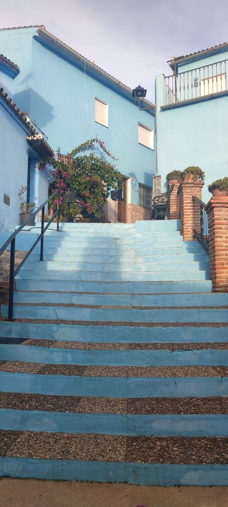 Le bleu avait apporté à tout ce petit monde, du plus vieux au plus jeune de la fraîcheur, un calme intérieur et ils avaient découvert les escaliers de la sagesse.