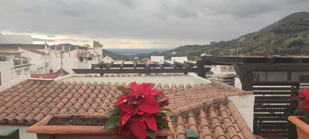 Ce jour le ciel est en colère dans l’arrière pays espagnol, la campagne enfile son manteau blanc afin de rejouir les enfants pour Noël. Proche de la côte, il tombe des cordes.