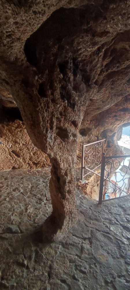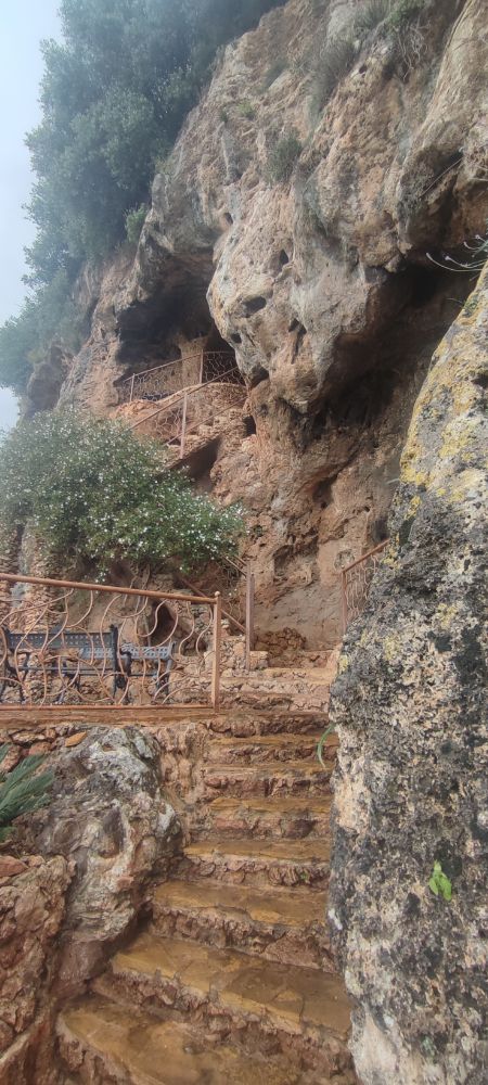 Parvenus dans le haut du village, voilà des escaliers qui nous intriguent. Dans cette oufalaise, depuis le néolithique, des hommes ont trouvé refuge dans des grottes.
