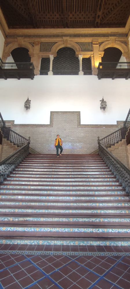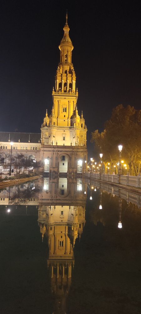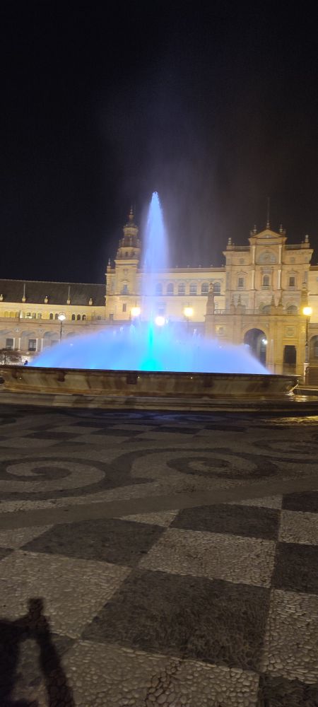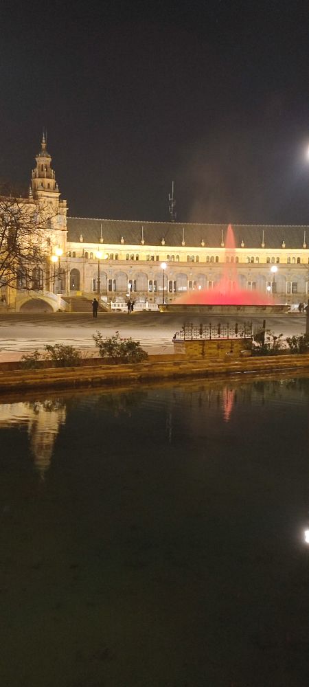 Ce palais fut construit pour l’exposition Ibéro-Américaine de 1929. L’éclat de la splendeur de la construction, relevé par la présence du soleil, ne fait aucun doute, mais une idée un peu sombre me traverse.