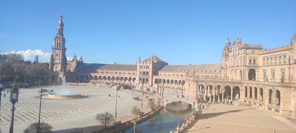 Nous arrivons à celle qui attire tant de monde : la place d’Espagne à Séville.