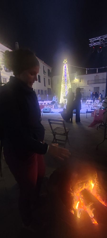 Le village est très calme, voire désert. Mais, quand on arrive dans sa partie basse, une petite place est très animée. Il y a du monde, des braseros, des chaises, trois messieurs qui accordent leur guitare, nous voici agréablement surpris et réjouis, car une fête se prépare.