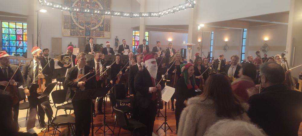 De retour au Portugal nous arrivons à Quarteira et pénétrons dans une église, nous avons rendez-vous ici avec l’orchestre de l’Algarve pour un concert de Noël.