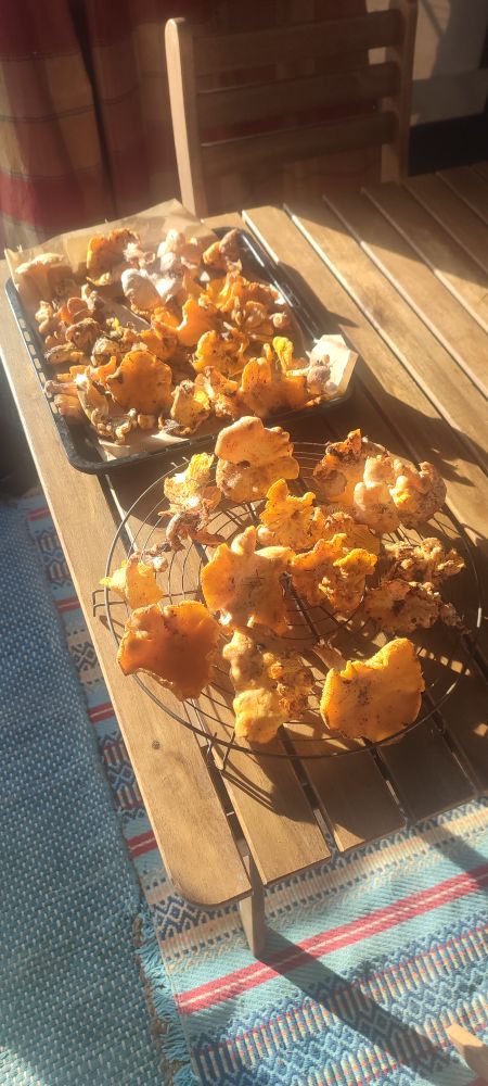 Il suffit que je me baisse, je gratte feuilles et terre et après une légère rupture avec la terre mère la chanterelle est là dans ma main. Il me reste à l’admirer et à ressentir la joie, le bonheur que cela me donne.