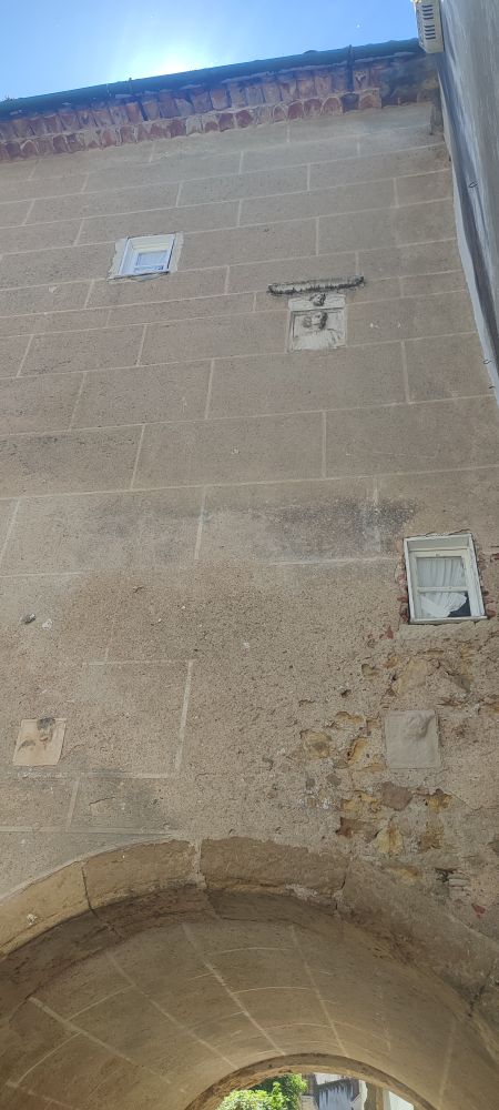 Dans une grande tranquillité qui nous permet de flâner, nous découvrons un ancien porche avec de petites ouvertures où la façade est parsemée de sculptures.