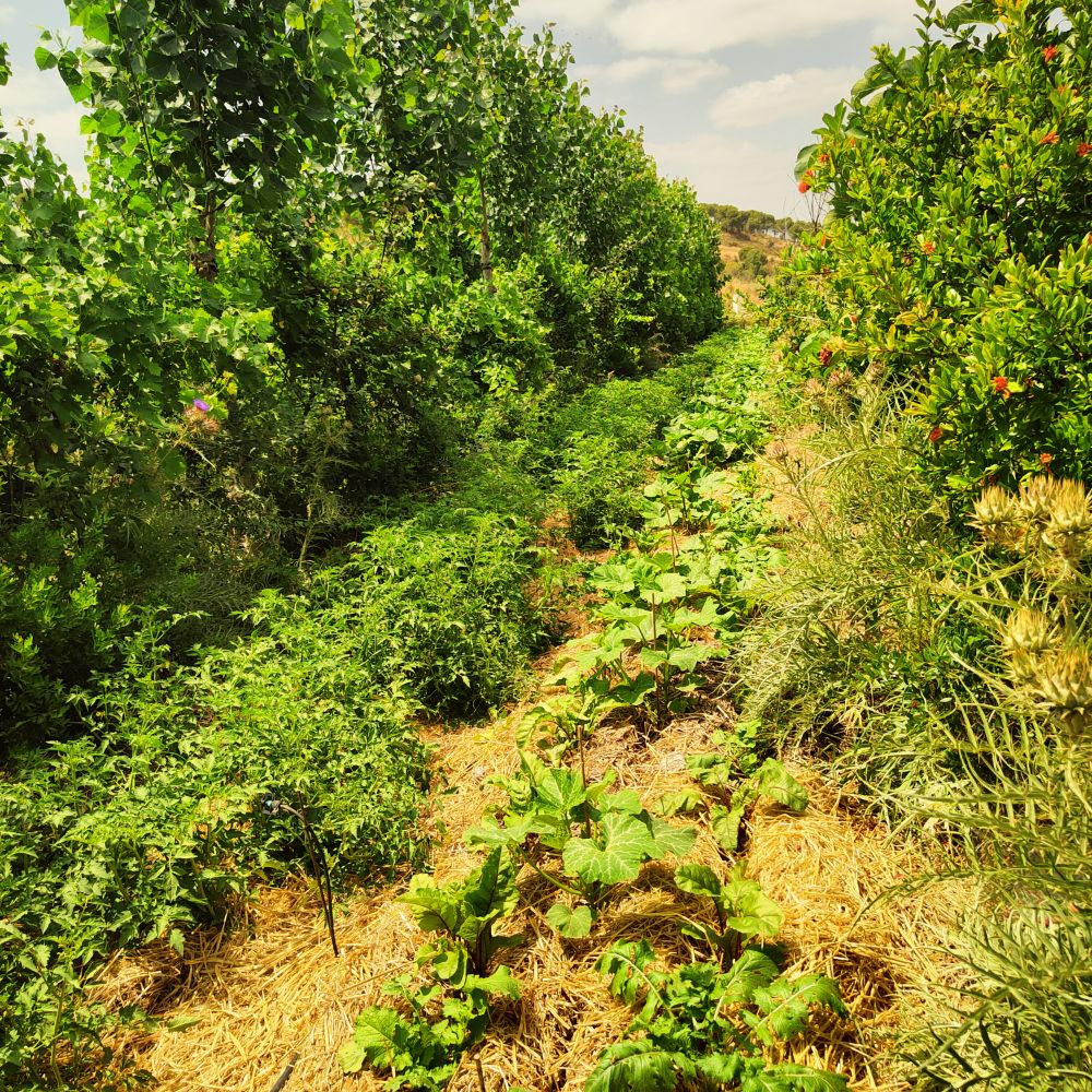 C’est l’action convergente de plusieurs facteurs. Il s’agit de faire pousser une grande diversité de plantes ensemble dans un système de cultures denses et complexes. Arbres, fleurs et légumes se côtoient de manière très serrée, le sol n’est jamais à nue, en permanence une couverture de coupe d’herbe ou de branchage le recouvre sur quinze à vingt centimètres ainsi qu’une ombre salvatrice. Grâce à cette biomasse, le sol devient riche et à son tour il nourrit les légumes et les arbres. Un équilibre entre le sol et les plantes se crée et l’on obtient une production d’abondance.
