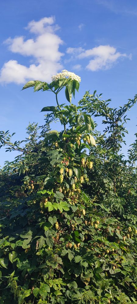 Qui aperçoit dans cette haie sauvage le sureau qui se dresse tel le cobra vers la lumière alors que le houblon utilise la rigidité de ce dernier pour lui aussi avoir sa part de soleil.