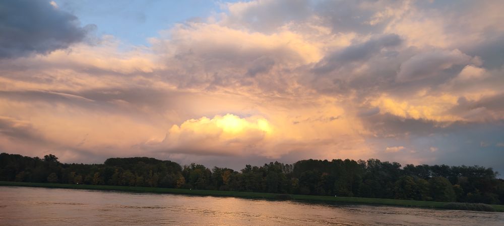 Le soir, la pérégrination arrive à sa fin, les arbres s’habillent de leur parure de la nuit pour s’endormir en hiver, ils nous disent combien ils nous aiment et le soleil couchant réjouit le cœur pur de l’Homme dans un jeu de lumière ou comme l’enfant il joue avec les nuages.
