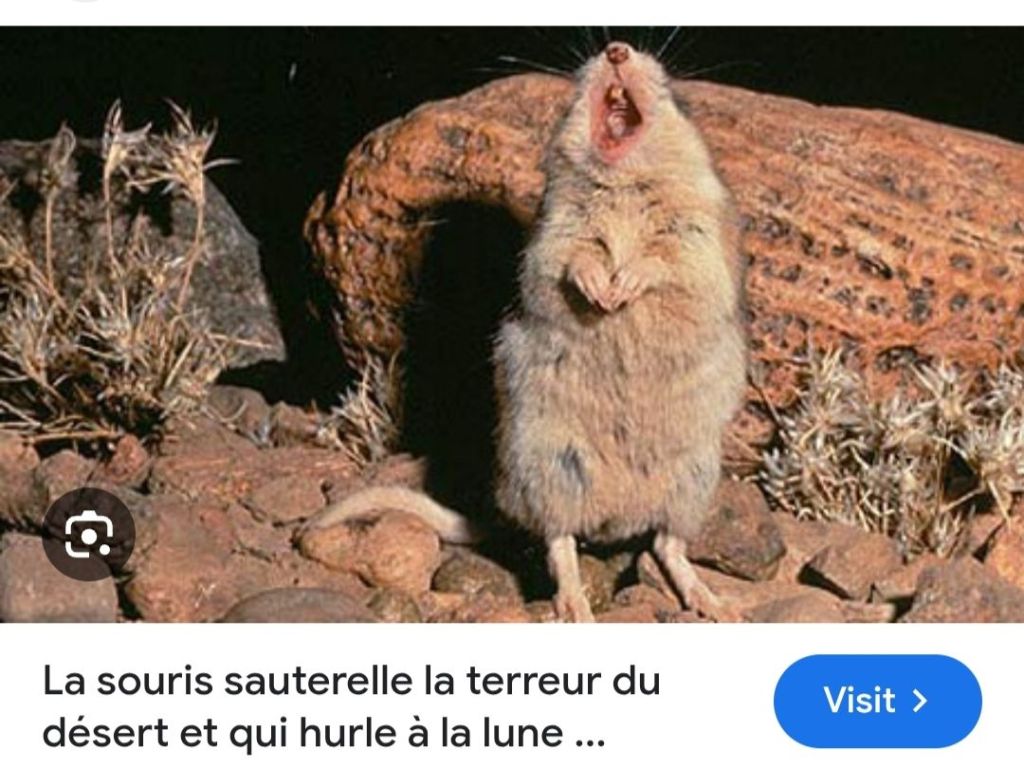 Nous nous arrêtons net, non pas que l’animal nous est repéré ou injecté de son venin, mais le hurlement que nous entendons est bien celui du loup. Notre guide nous rassure, il n’y a point de loups ici, mais par contre vous venez d’entendre le cri de la souris sauterelle. Chaque membre du groupe sourit, certains émettent des gloussements de moquerie, convaincus que ce guide se moque de nous. Il insiste en nous expliquant que cette souris sauterelle, mesurant environ 15 centimètres pour un poids de 20 à 50 grammes et cache des dons incroyables dont son cri, il est dit qu’elle hurle à la lune, tel le loup. Si la scolopendre arrive à la piquer, elle est protégée par la mutation d’une protéine nerveuse qui lui évite la paralysie et diminue sa douleur.